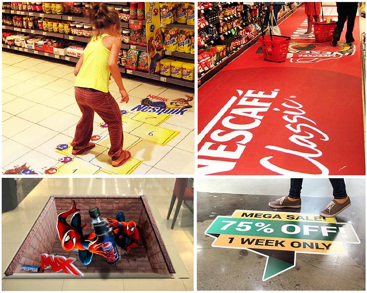 Our floor stickers are widely used and can be seen everywhere.