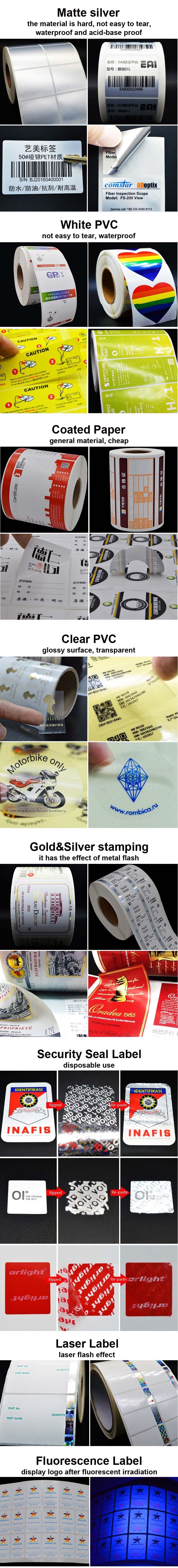 Please check the following pictures, we can make label stickers of various materials and functions, just tell us how you want to use label stickers.