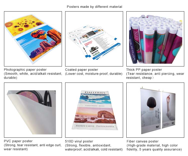 4.There are many kinds of materials for making posters. We have many years of production experience, and we can provide the best quality ormost economical solutions according to your needs. Welcome to consult.