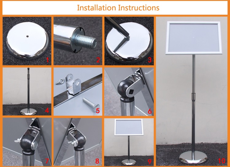 You can check the following pictures to easily learn how to install the Telescopic Sign Stand.